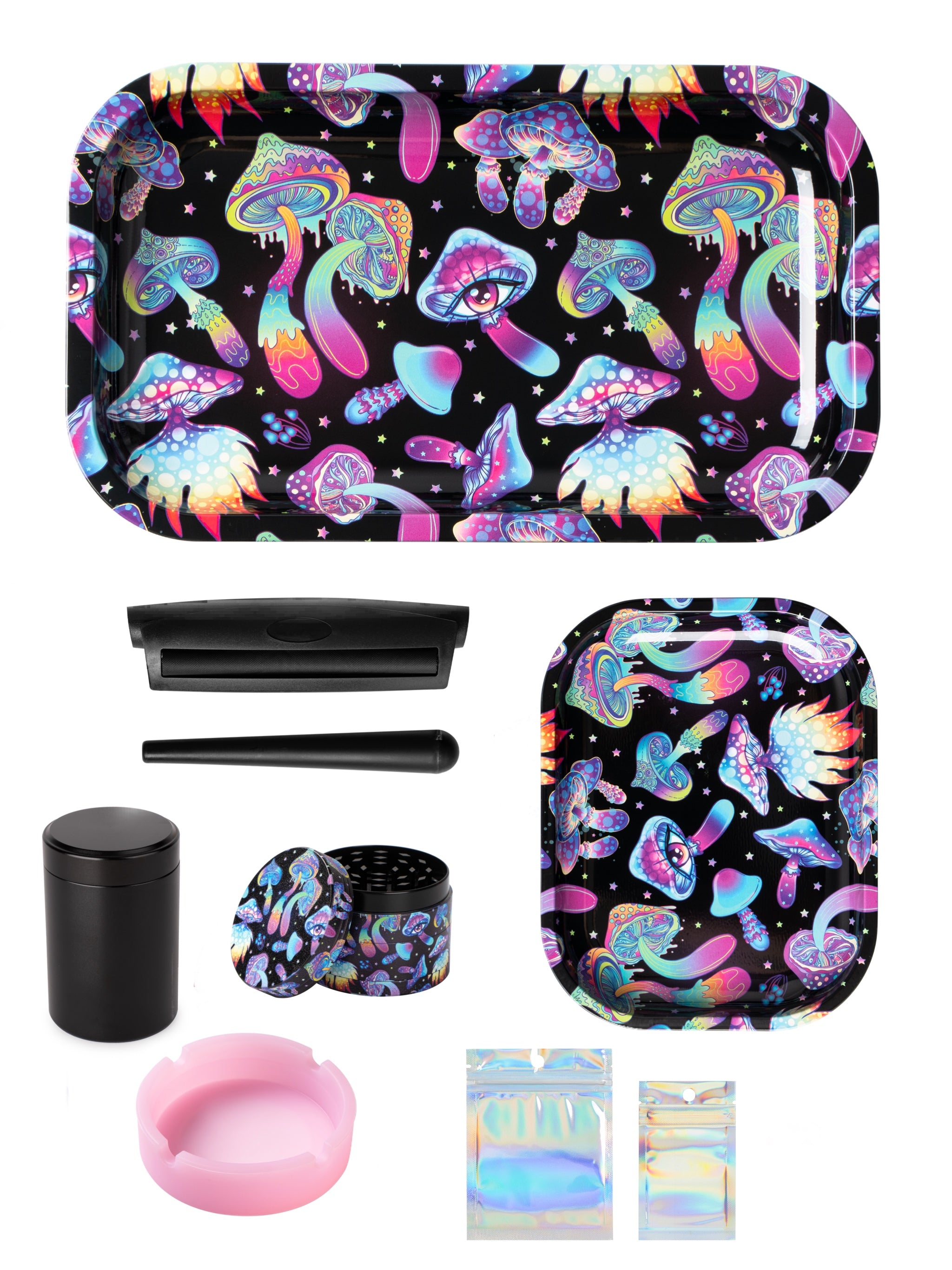 Rolling Trays: Made from durable metal for long-lasting use. The large tray measures 10.5 x 6 inches, offering plenty of space for rolling, while the small tray is 7 x 5.5 inches, perfect for portability.